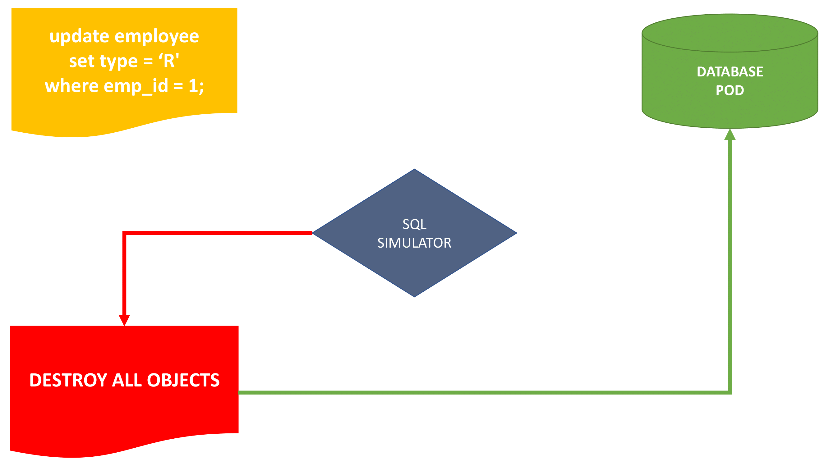 All objects in the database are destroyed.